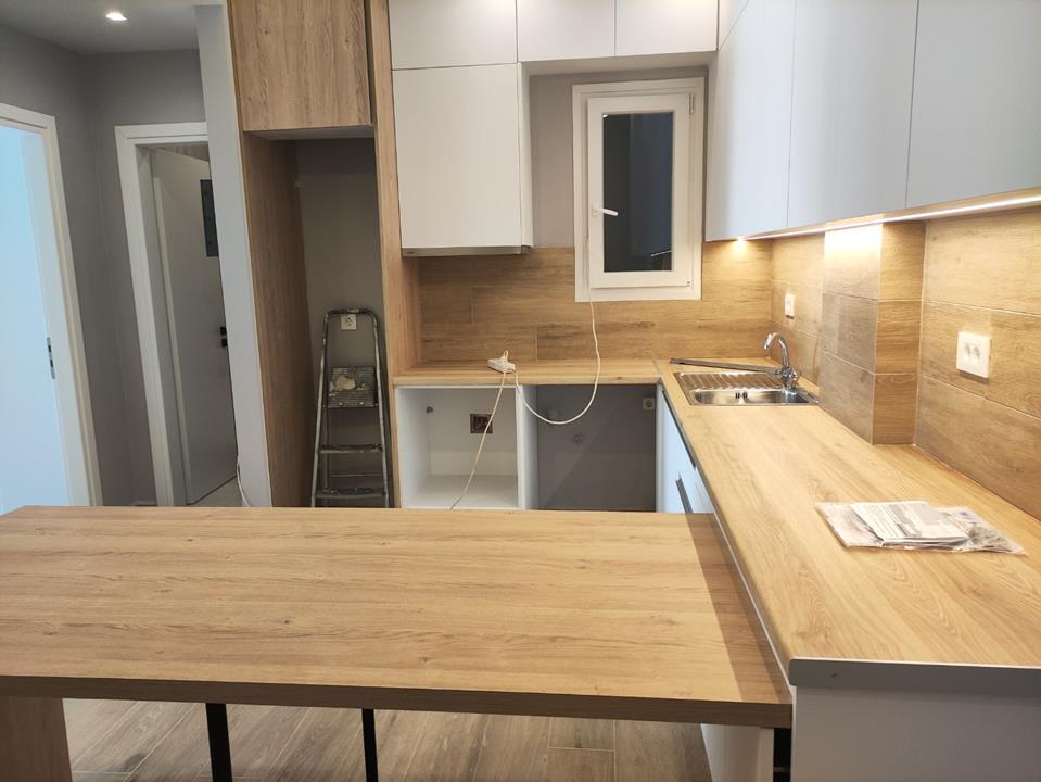 Έγινε πολυτελής ανακαίνιση με άριστα υλικά , ηλεκτρολογικά (πίνακας , διακόπτες , κρυφούς φωτισμούς ) , υδραυλικα (μπανιο ) , δάπεδα , κασώματα πόρτες , κουζίνα .